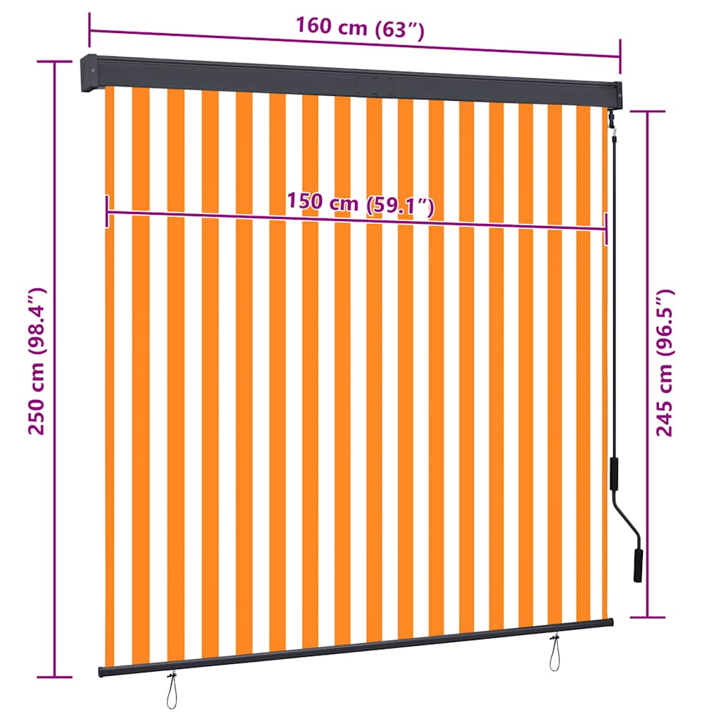 Tenda a Rullo per Esterni 160x250 cm Bianca e Arancione 145975
