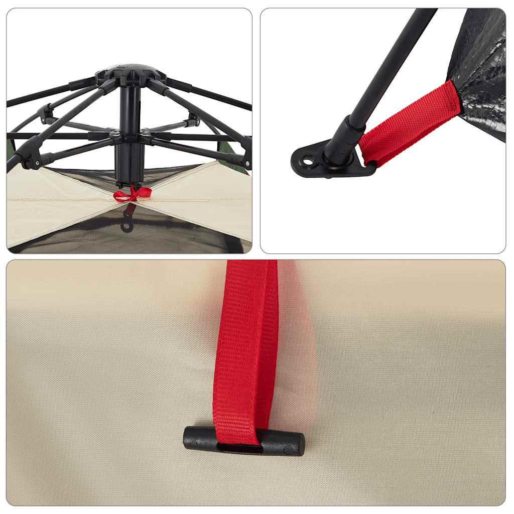 - Sistema a sgancio rapido: monta la tenda senza sforzo con il sistema a sgancio rapido! Appoggiare la tenda, estendere i pali preassemblati finché non si bloccano in posizione, e il gioco è fatto!
