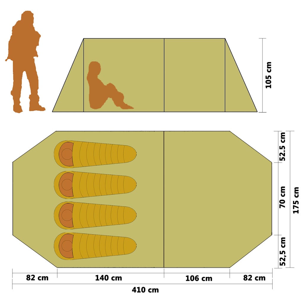 Nota: questa tenda per 4 persone può ospitare 4 persone, ma consigliamo questa tenda per un paio di camper con la loro attrezzatura in modo da avere lo spazio e il comfort di cui hanno bisogno.
