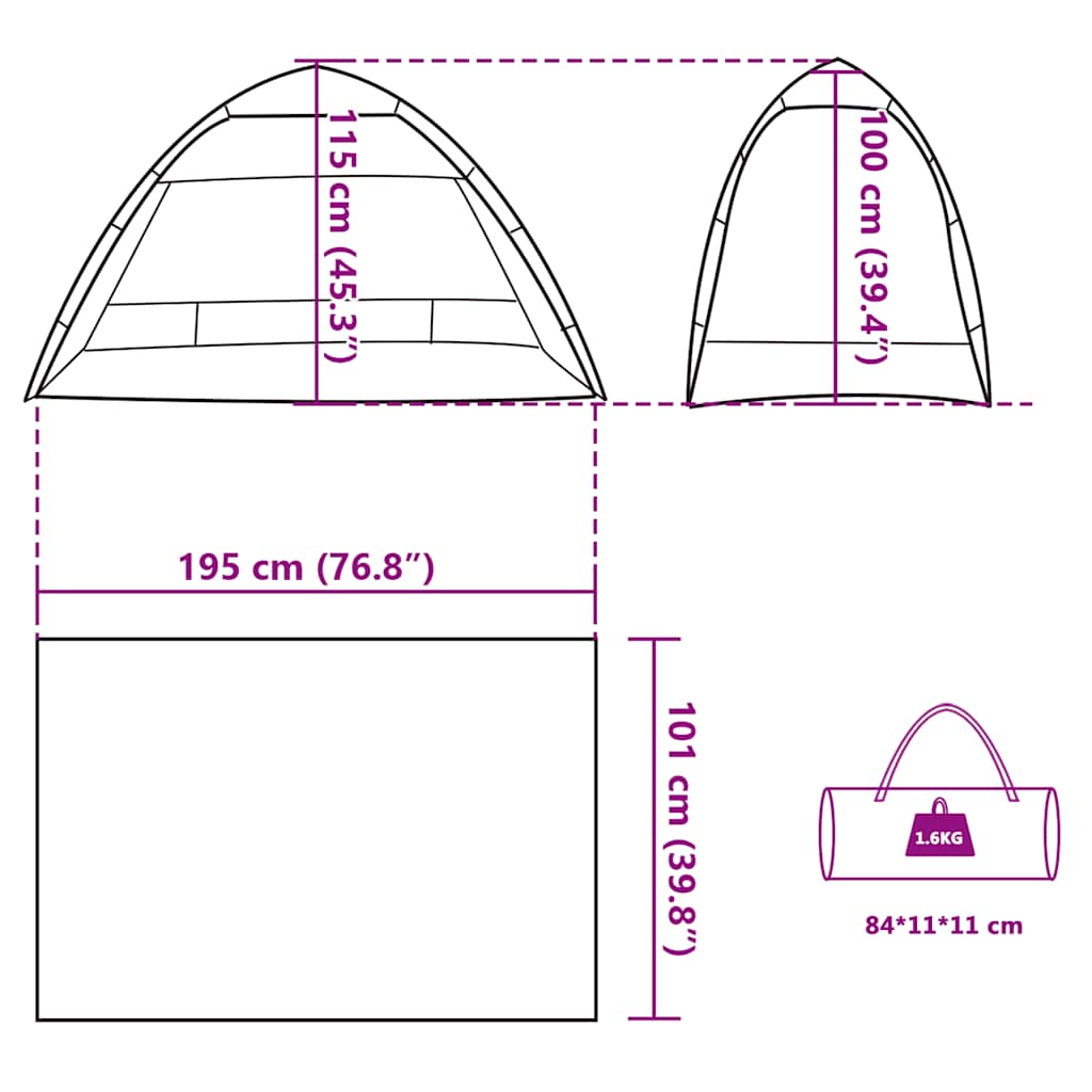 - Dimensioni esterne della tenda: 195 x 101 x 115 cm (L x L x A)