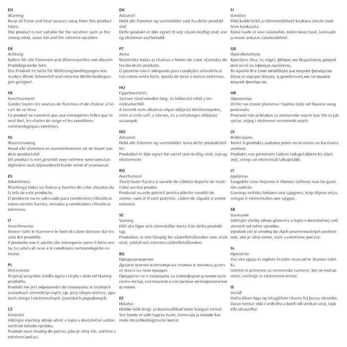 - Tenete tutte le fiamme e le fonti di calore lontane dal tessuto di questo prodotto.