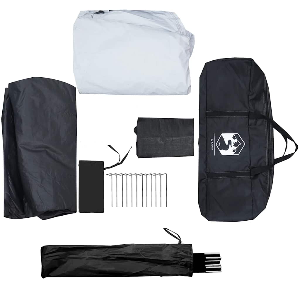 - Facile installazione e smontaggio: montare e smontare la tenda è un gioco da ragazzi grazie ai pali in fibra di vetro altamente flessibili e leggeri e al comodo sistema di connessione a perno e anello.