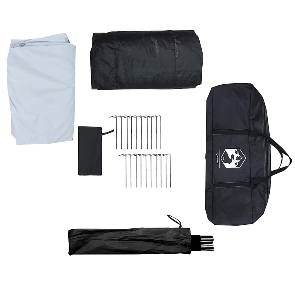 - Facile installazione e smontaggio: montare e smontare la tenda è un gioco da ragazzi grazie ai pali in fibra di vetro altamente flessibili e leggeri e al comodo sistema di connessione a perno e anello.