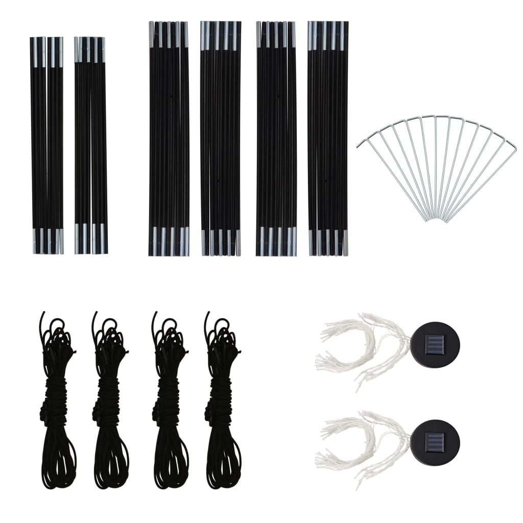 La tenda da festa è realizzata in tessuto 100% poliestere con rivestimento in PA, che la rende resistente ai raggi UV. Il telaio è realizzato in robusta fibra di vetro ed è quindi resistente alla ruggine e anche leggero. Le quattro pareti a rete "zanzariera" inclusi offrono la protezione ideale contro tutti i tipi di insetti. Dotati di una cerniera, possono essere attaccati in pochi secondi. Inoltre, l'illuminazione a LED con 96 LED può essere facilmente accesa e spenta manualmente, mentre il modulo solare in dotazione carica la batteria integrata durante il giorno.