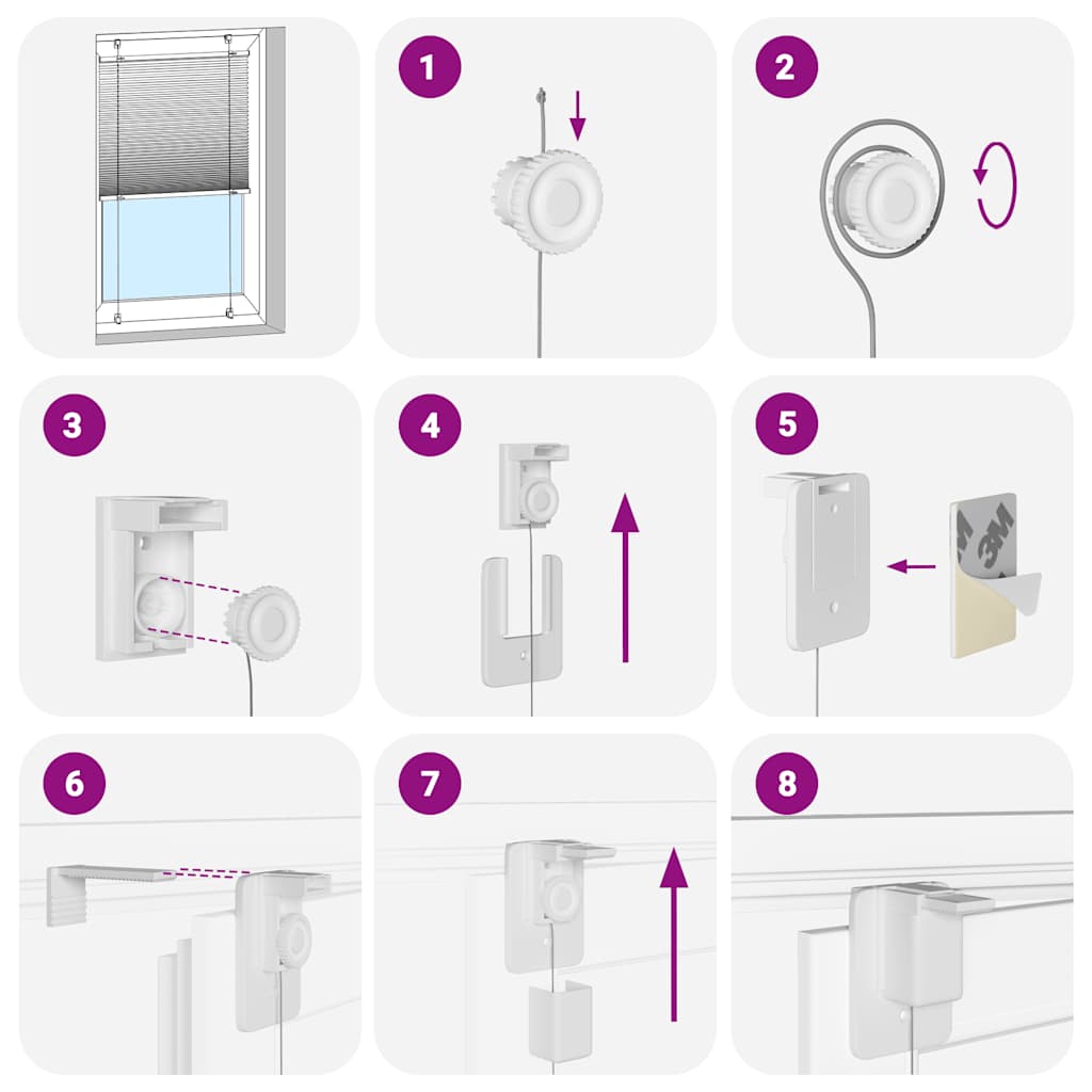 - Due modi di montaggio: È possibile fissare la tenda plissettata alla parete o alla finestra con viti o senza trapano utilizzando staffe di serraggio, a seconda delle esigenze.