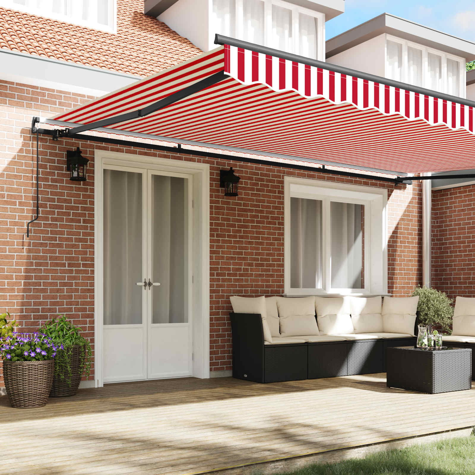 Questa Tenda Retrattile Moderna aggiunge un tocco elegante e funzionale a qualsiasi giardino o terrazza. Il suo design moderno è semplice e stiloso, creando un'ottima aggiunta per il tuo spazio all'aperto. É progettata per l'uso all'esterno, offrendo un'ombreggiatura efficace, migliorando il comfort, soprattutto nei mesi caldi. È versatile e perfetta per chi cerca un mix di comodità, stile e adattabilità nel proprio giardino o terrazza.