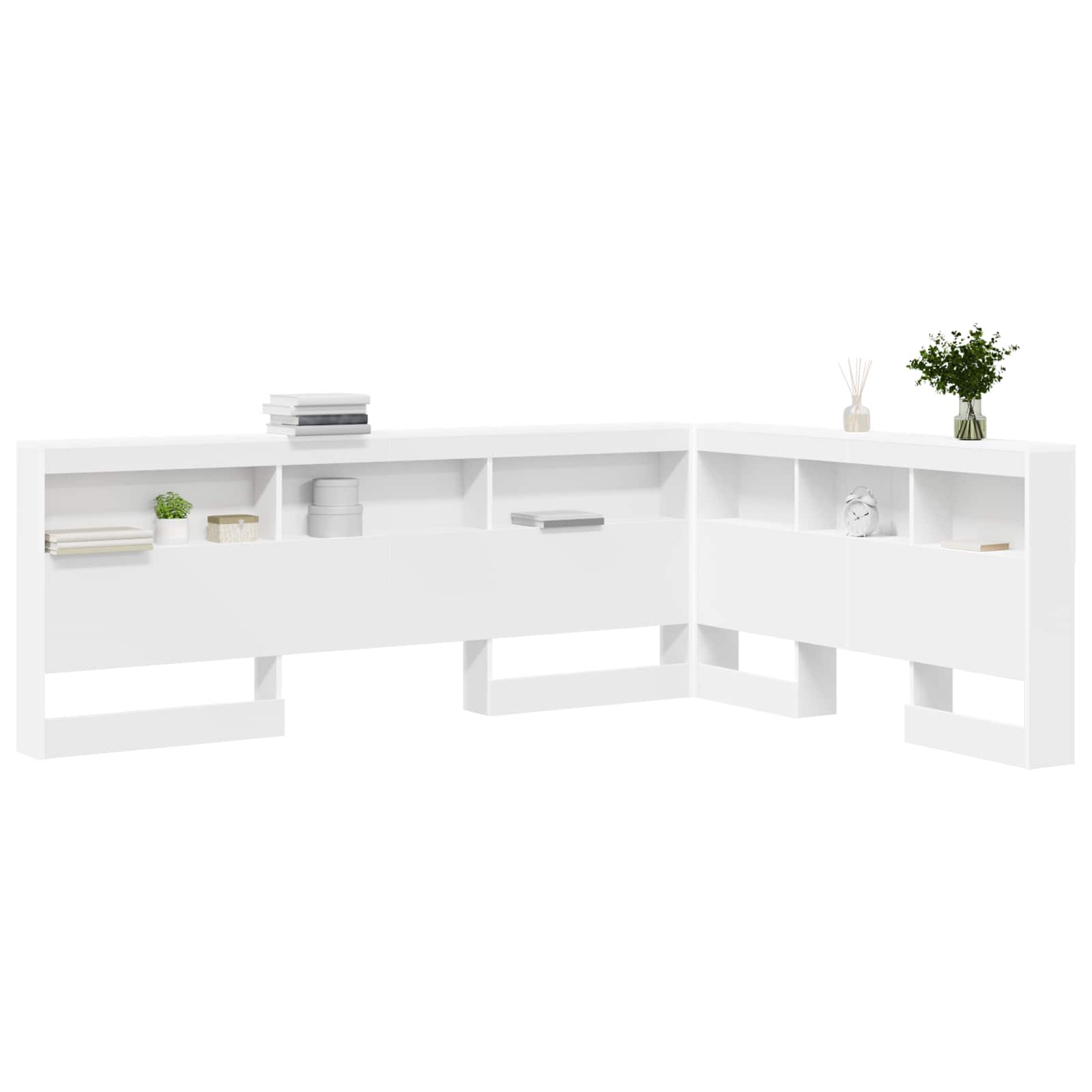 La testata contenitore è un perfetto mix di stile e funzionalità, pensata per la camera da letto moderna. È realizzata in legno ingegnerizzato, offre un design minimalista e tanto spazio per tenere in ordine i tuoi oggetti essenziali. La sua struttura a L dà un tocco di originalità e si integra facilmente in ogni ambiente contemporaneo, fornendo soluzioni pratiche per chi ama linee pulite e design funzionale.