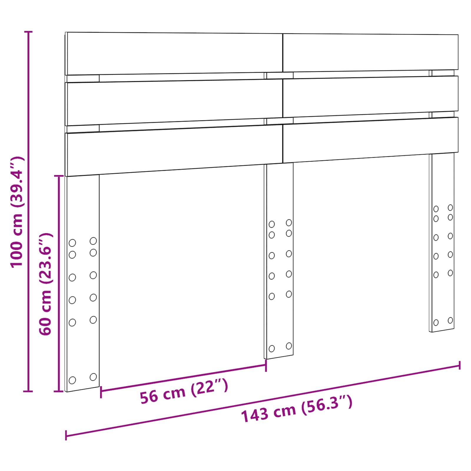 - Dimensioni complessive: 143 x 3 x 100 cm (L x P x A)