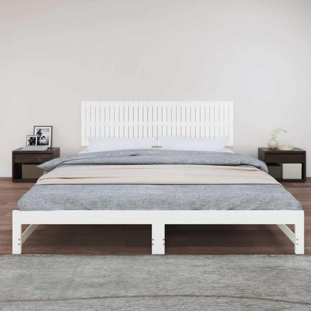 Testiera da Parete Bianca 204x3x60 cm in Legno Massello di Pino 824829