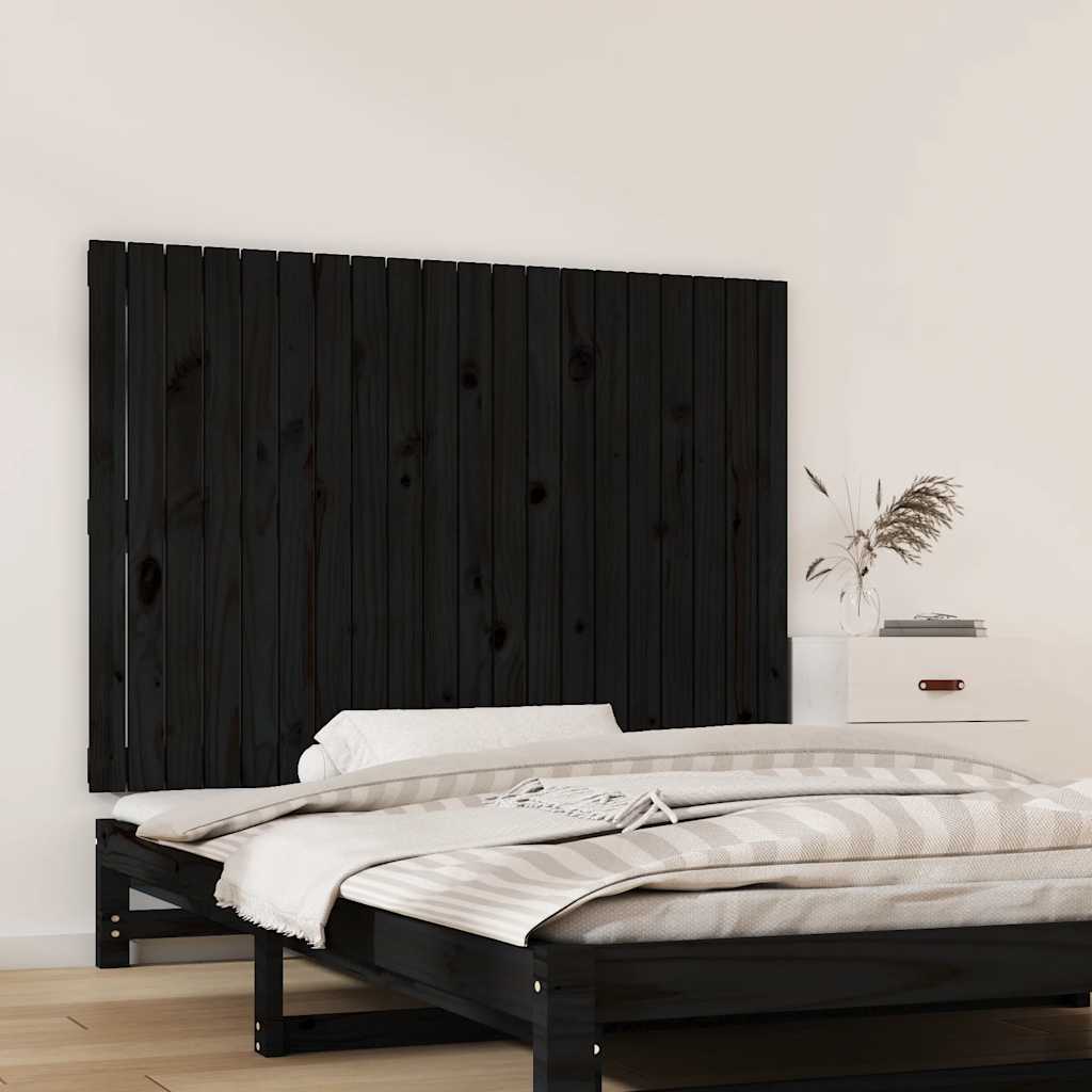Testiera da Parete Nera 127,5x3x90 cm in Legno Massello di Pino 824892