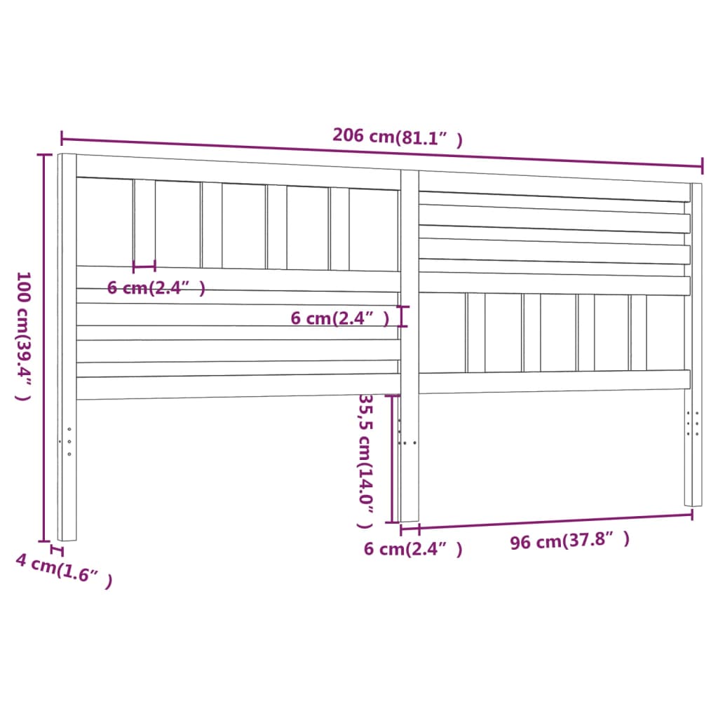 Testiera per Letto 206x4x100 cm in Legno Massello di Pino 814164