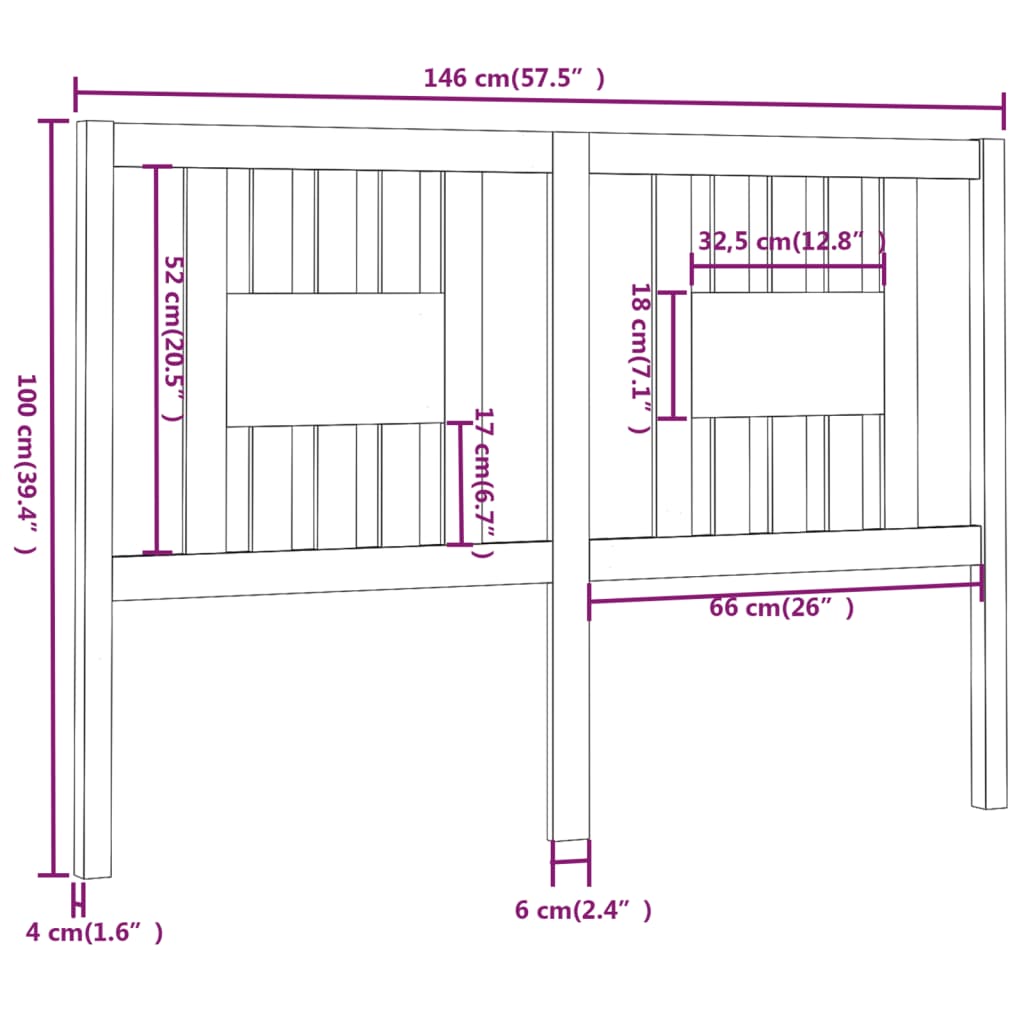 Testiera per Letto Bianca 146x4x100cm in Legno Massello di Pino 818671
