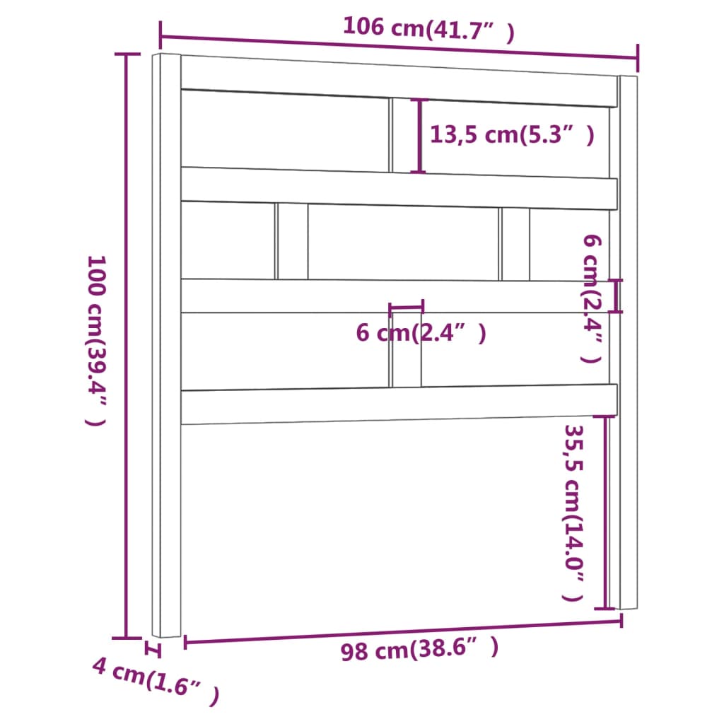 Testiera per Letto Grigia 106x4x100cm in Legno Massello di Pino 814181