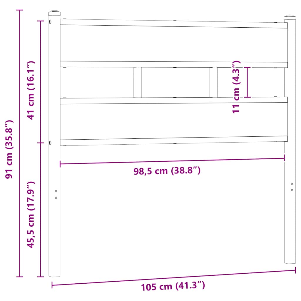 Testiera di Ricambio Rovere Sonoma 100 cm in Ferro e Legno Multistrato 4017131
