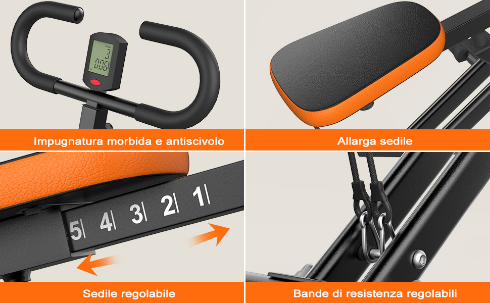 Monitoraggio intelligente: Display integrato traccia tempo, ripetizioni e calorie bruciate per ottimizzare i progressi.