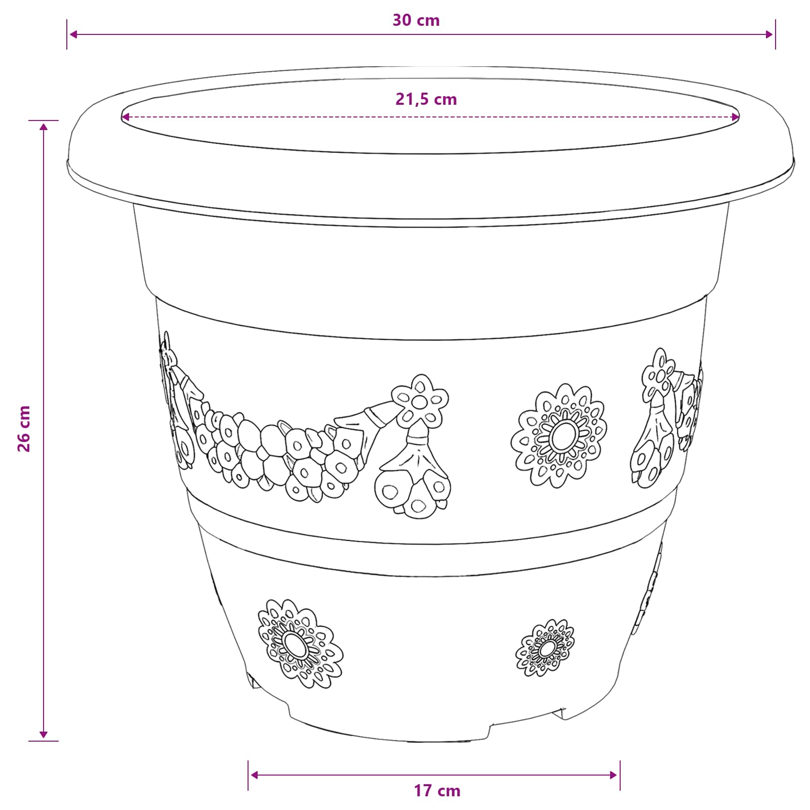 - Design funzionale con drenaggio: I fori sul fondo fanno in modo che l'acqua in eccesso fuoriesca, prevenendo la marcescenza delle radici e aiutando le piante a crescere in modo sano. Il design è pensato per garantire che le piante prosperino, sia al chiuso su un davanzale che all'aperto su una terrazza.