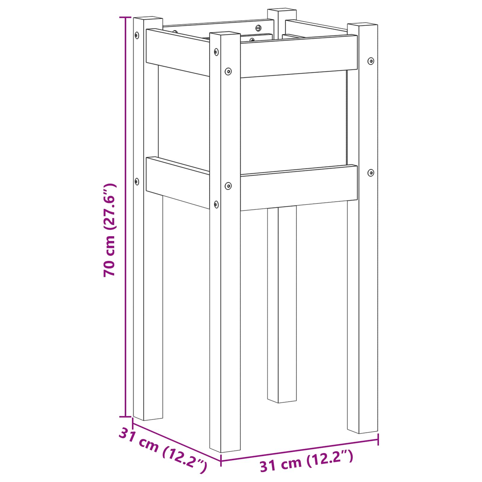 - Efficiente nello spazio: Con misure di 31 x 31 x 70 cm, questa fioriera riesce a bilanciare tanto spazio per le piante con una forma compatta, perfetta per terrazze e passaggi stretti. Il suo design efficiente è pratico per giardini quali anche spazi ridotti.