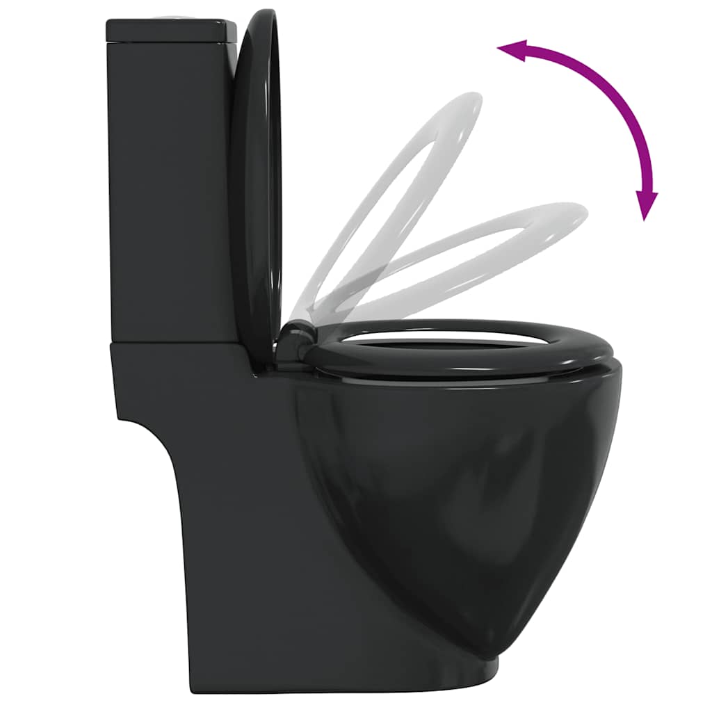 Vaso WC in Ceramica da Bagno Rotondo Base con Scarico Nero 3059889