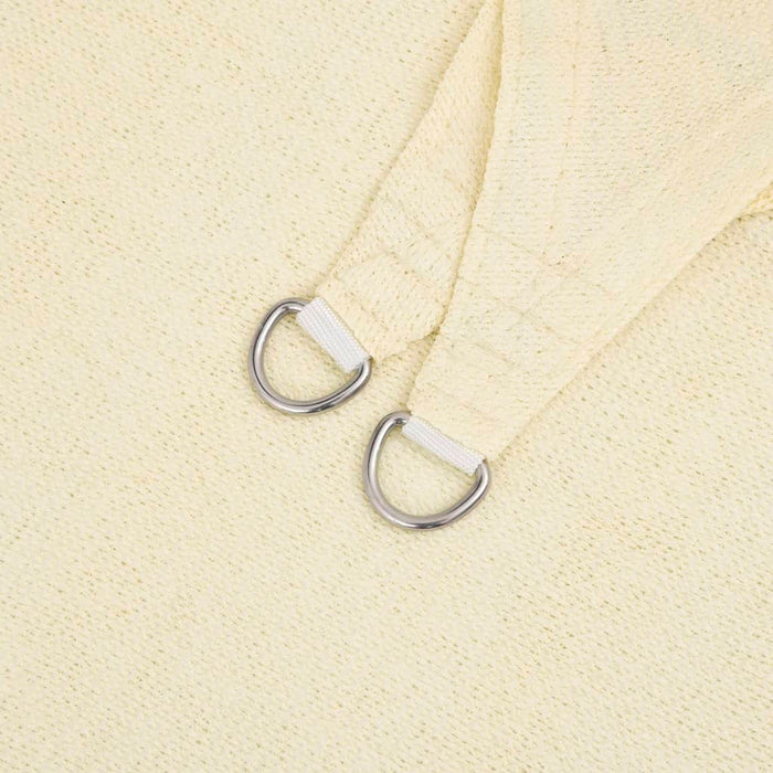 La vela da sole, realizzata al 100% in HDPE (polietilene ad alta densità ), vi protegge dalla luce solare diretta, permette parzialmente il passaggio del vento ed è permeabile all'acqua. L'HDPE è trattato in modo speciale, quindi è resistente alle muffe e ai raggi UV. L'ombrellone è facile da montare grazie agli elementi di fissaggio in acciaio inossidabile ad ogni angolo e alle corde incluse.