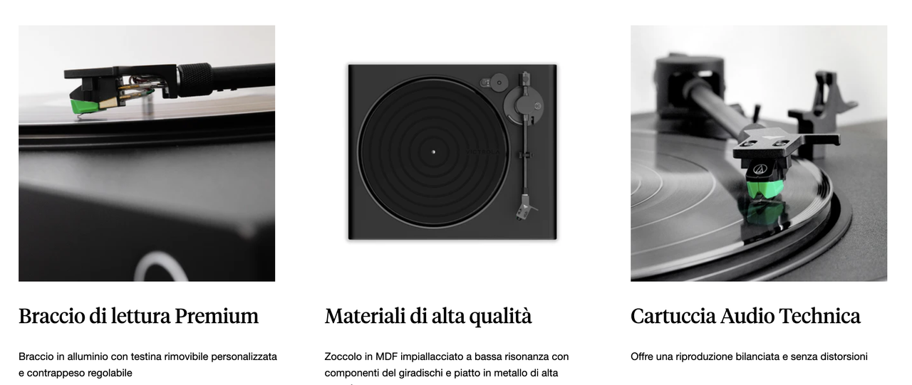 preamplificatore commutabile (cavi RCA inclusi), che ti consente di ascoltare i tuoi dischi preferiti con una nitidezza sorprendente.