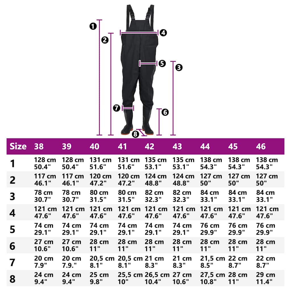 Wader da Pesca con Pettorina e Stivali Nero Taglia 43 4016986
