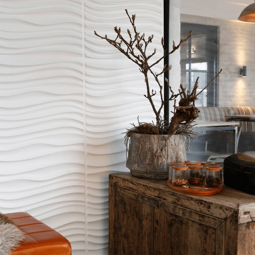 Sono sicuramente un'ottima raccomandazione per chi ama la dinamica. La nostra decorazione murale 3D misura 50 per 50 cm, il che vi consente di installarla facilmente da soli. Il colore originale delle piastrelle 3d della Wall Art è avorio ma la piastrella 3d può essere dipinta con qualsiasi tipo di vernice (sia a base di acqua che di olio) in modo da poterla dipingere del colore che desiderate!